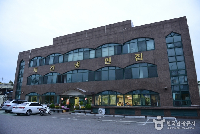 재건냉면의 독특하고도 토속적인 맛의 비밀은 면에 있는데 손님이 주문하면 즉석에서 뽑아내어 면발이 쫄깃쫄깃할뿐 아니라 자르르 윤기마저 흐른다. 육수도 한우의 뼈를 한 솥 가득 넣고 만 하루동안 푹 끓인 후 장으로 간을 맞춘다. 쫄깃한 면발에 육수를 부어 삼십여가지의 갖은 양념이 제맛을 내게 되는데 쇠고기살을 얇게 썰어 계란을 묻혀 육전이 푸짐하게 들어가면서 냉면의 맛을 더해준다. 메뉴로는 물냉면, 비빔냉면, 수육, 육전 등이 있다.
