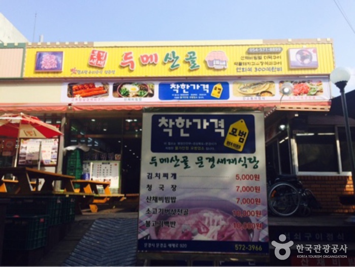 문경새재두메산골은 경북 문경, 문경새재 입구에 있으며 더덕구이, 석쇠구이, 산채비빔밥 등을 제공하는 음식점이다. 음식이 보약이다라는 음식이념을 추구하고 있으며, 신선하고 깨끗한 재료를 사용한다.