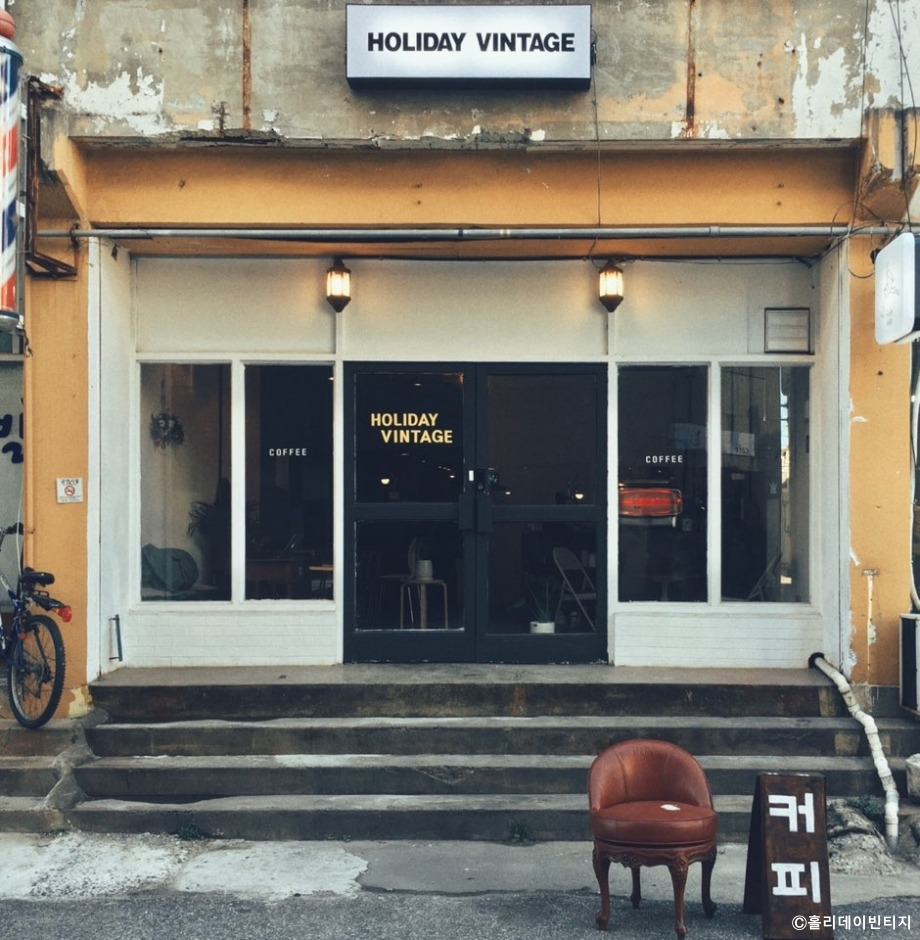 홀리데이빈티지는 강원도 강릉시 동부시장 안에 있는 디저트 카페이다. 전혀 카페가 있을 것 같지 않은 시장 안으로 지도를 따라가면 나온다. 이곳은 이색 디저트로 유명한 곳이다. 돌 모양을 한 몽돌과 백돌이 유명하다. 몽돌이나 백돌을 시키면 외양은 돌과 똑같이 생긴 디저트가 나온다. 몽돌은 반을 가르면 흑임자 맛 무스케이크 같은 스타일이다. 덜 녹은 상태에서 먹으면 아이스크림 같고 다 녹은 뒤에는 상당히 부드러운 맛이다. 넓은 곳은 아니지만, 비주얼이 압도적이라 인스타그램을 하는 고객층에 인기가 많은 곳이다.