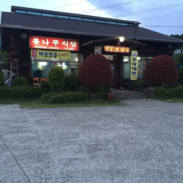 순천만 정원에서 약 2㎞ 떨어진 곳에 위치한 통나무 식당은 남도 전통식으로 음식을 대접하고 있다. 식당 앞 주차장은 약 차량 50대 정도가 주차가 가능하며 약 140명의 인원이 수용 가능하여 단체모임이나 회식, 가족모임 장소로 안성맞춤인 식당이다. 이곳은 순천의 자랑인 꼬막정식 및 짱뚱어탕을 메뉴로 하고 있으며 이외에 백반, 삼겹살, 꼬막회무침 등 다양한 메뉴가 준비되어 있다.