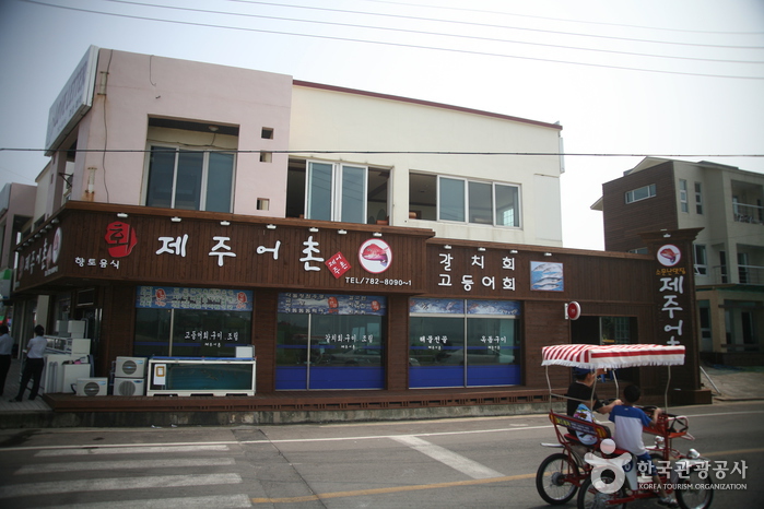고등어는 성질이 급한 생선으로 잡히면 바로 죽는다고 한다. 그래서 싱싱한 생선회로 먹을 수 있는 지역이 매우 제한적일 수밖에 없는 어종인데, 다행히도 제주도에서는 그 참맛을 볼 수 있기에 많은 미식가들이 즐겨 찾는다. 제주 어촌 식당도 그중 하나다. 육질은 부드럽고 지방과 수분이 많아 신선도가 빨리 떨어지므로 회로 먹기 어려운 고등어회는 제주도의 대표 음식으로 갈치회와 쌍벽을 이룬다. 갈치회는 가늘고 길게 떠내는 모양이 매우 독특한데 하얀 갈치살이 쫄깃쫄깃하면서 씹으면 씹을수록 느껴지는 감칠맛과 삼키기 전에 느껴지는 고소한 뒷맛 모두 일품이다.