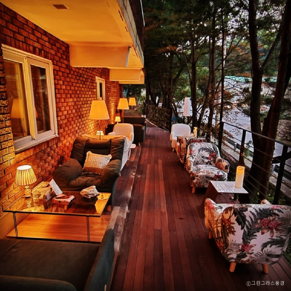 경기도 광주시 오포읍에 위치한 카페이다. 길을 지나다가 이곳이 맞나 싶을 때 밤색 건물과 그라스 룸이 보인다. 사방이 투명한 유리로 된 공간에 커튼이 적당히 드리워져 있는 프라이빗한 공간이 있어 일행끼리만 오붓한 시간을 보낼 수 있다. 개인 주택을 개조한 듯한 건물 내부에도 일행만 자리할 수 있는 개인 공간이 있다. 룸은 미리 하루 전에 예약하는 것이 좋다. 테이블에 여러 개 놓여 있는 홀은 예약 없이 방문해도 이용할 수 있다. 피자와 파스타가 맛있는 집으로 커피는 서비스로 제공한다. 룸 사용 시간은 최대 2시간이다. 율동공원에서 차량으로 10분 거리에 있다.