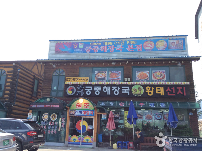 미시령 고개를 지나 설악산 국립공원으로 넘어가는 길목 척산 온천단지에 자리한 본가 궁중해장국은 2층 통나무 별장형 구조로 되어 있고 깨끗한 실내장식과 벽면을 통유리로 처리하여 식사하면서 설악산의 아름다움을 감상할 수 있도록 하였다. 각종 야채를 적절하게 섞어 만든 만두의 맛이 남달라 등산이나 관광 또는 온천, 해수욕을 즐기고 난 후 부담없이 가족이 함께 즐길 수 있다. 또한 구수하고 시원한 황태해장국과 부드러운 선지해장국, 우거지갈비해장국도 아침식사로 인기가 많다.