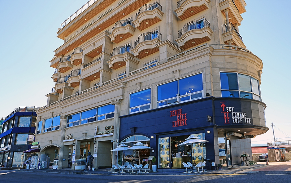 젠주라는 뜻은 강릉 송정동 남대천 하구의 넓은 뜰을 부르던 옛 이름으로, 안목 해변에서 가장 높은 오션 뷰를 자랑하는 카페이다. 헤렌하우스 호텔 내에 있고, 건물의 1층 카페에서 주문 후에 엘리베이터로 6~7층으로 이동하면 된다. 일반 테이블석은 물론 좌식 테이블, 옥상 루프탑, 천국의 계단 포토존까지 다양하게 준비되어 있다. 높은 곳에서 내려다보는 뷰가 멋진 곳으로, 해변가에 오가는 차량이나 사람들이 없어 창밖으로 바다만 감상할 수 있다. 안목 해변에 카페들처럼 다양한 커피 음료와 디저트류가 있다.