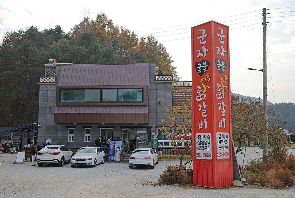 남춘천 IC에서 아주 가까운 닭갈비 전문식당이다. 닭갈비가 크게 두 가지 종류가 있는데, 숯불구이와 철판구이 중에 고르면 화로나 철판 테이블에 앉게 된다. 숯불닭갈비는 양념과 간장 두 가지 맛이고 초벌구이 되어 나온다. 먹기 좋게 바로 잘라서 구워준다. 후식으로 막국수를 먹을 수 있고, 철판 닭갈비를 먹게 되면 볶음밥으로 마무리하면 좋다. 수도권에서 동해안으로 가거나 인근 골프장을 가는 인파들이 잊지 않고 들리는 숨은 맛집이다.
