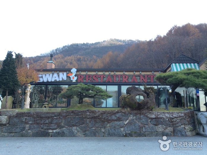 스완레스토랑은 무극저수지의 운치 있는 풍경을 느낄 수 있어 분위기 좋은 외식장소로 손꼽힌다. 또한 넓은 공간 덕분에 여러 행사 활동이 가능한 식당이다. 대표메뉴는 테르미도르 반마리와 안심스테이크 조합인 서프 앤 터프이며 그 외에 양갈비 스테이크, 그릴드 야채 토마토파스타, 콤비네이션 피자 등 다양한 양식 메뉴가 준비되어 있다.