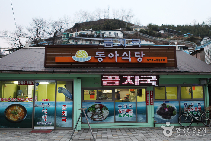 강원도 삼척시 정하동 삼척항 인근에 있는 동아식당은 곰치국 전문 음식점이다. 성게알과 계란을 비벼먹는 성게백반이 인기 있다. 성게알, 노른자, 참기름, 밥을 넣어 비빈 후 김을 싸먹는 성게백반과 시원한 곰치국은 많이 찾는 메뉴다. 곰치국, 성게백반, 생태탕, 해물탕, 알탕 등 다양한 메뉴를 제공한다.