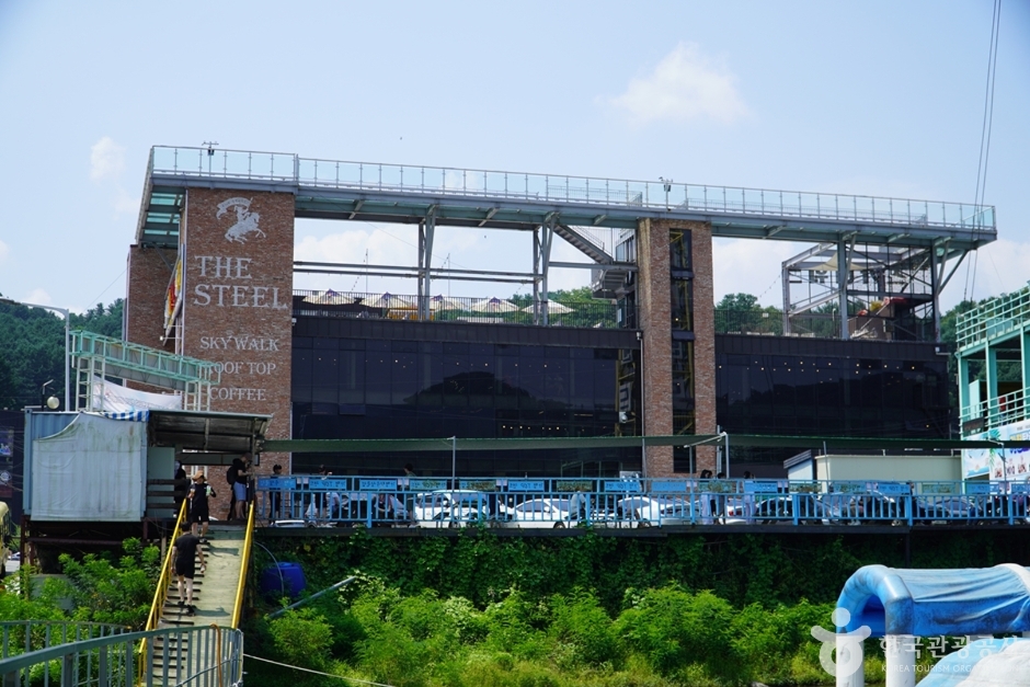 북한강 뷰를 편하게 감상할 수 있고 바로 앞에서 번지점프하는 모습들을 볼 수 있다. 5층 건물 전체가 카페이고 4층 루프트탑은 잘 꾸며져 있어서 사진 스폿으로도 좋고 5층에서는 스카이 워크를 체험할 수 있다.