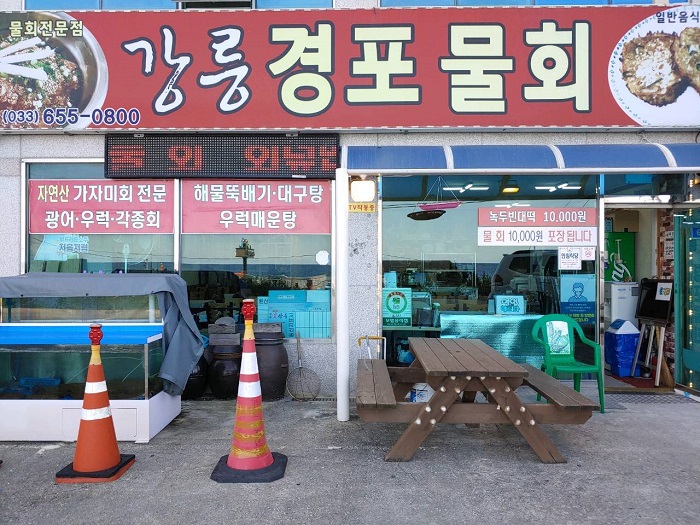 바닷가에 있어, 물놀이 후 방문하기 좋은 곳이다. 강원도 강릉시에 있는 해물 전문점이다. 대표메뉴는 물회다.