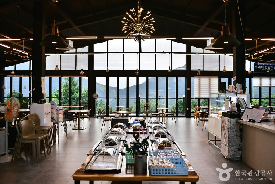 2층 카페의 넓은 창밖으로 만연산의 경치가 한눈에 보이고 알파카 모양의 쿠키등을 직접 베이킹해서 제공하고 있다.