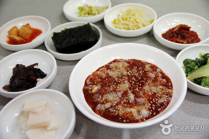 목포에서 꽃게 전문 요리점으로 유명한 장터식당은 꽃게 즉석 무침과 꽃게 살 만을 발라낸 꽃게살, 꽃게탕이 일품이다. 목포 5미 가운데 하나인 꽃게살무침을 잘하기로 소문난 집으로, 주문 시 즉석에서 생꽃게 살을 발라 양념을 얹어주는 꽃게살무침과 꽃게 껍데기째 무친 꽃게무침이 대표 메뉴다. 참기름을 뿌린 밥에 꽃게살무침을 크게 한 숟가락 떠 넣고 쓱쓱 비벼 김에 싸 먹으면 된다.