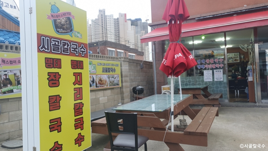 시골칼국수는 강원도 속초시에 있는 명태 장칼국수 전문점이다. 강원도의 장칼국수는 대부분 된장, 고추장을 섞고 고춧가루를 추가해서 구수하고 매콤한 국물에 칼국수를 끓여 먹는데 이곳에선 강원도의 장칼국수에 명태의 곤이와 명란을 추가한 명태장 칼국수를 맛볼 수 있다. 매운맛이 주메뉴이지만 맵지 않은 명태 지리 칼국수를 주문할 수도 있고 곤이와 명란을 추가할 수도 있다. 여름철에는 명태회를 올린 냉국수도 판매하며 주차는 매장 앞쪽에 할 수 있다.