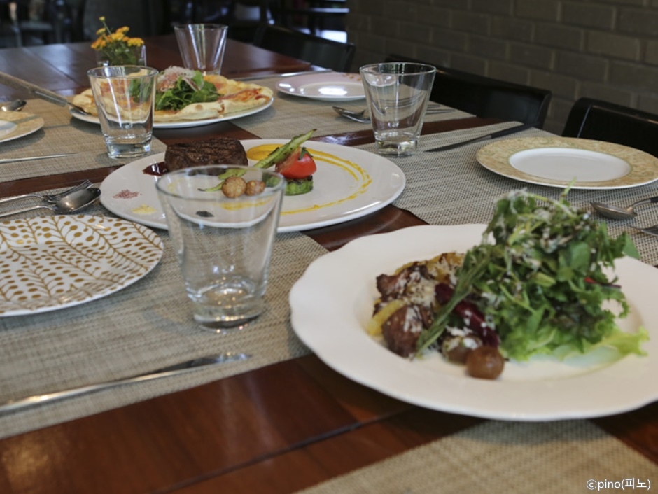 pino(피노)는 경기도 고양시 일산동구 풍동 먹자거리 애니골에 있는 이탈리안 레스토랑이다. 대중교통을 이용할 경우 경의중앙선 풍산역 1번 출구와 가깝다. 소나무에 둘러싸인 단독 건물로 운치가 있고 내부는 고급스러운 인테리어로 우아한 분위기를 연출했다. 대표 메뉴는 스테이크로 점심과 저녁 각각 다른 구성의 코스요리가 준비돼 있어 특별한 가족 모임이나 손님 접대에 좋다. 다만, 사전 예약이 필요한 코스요리가 있으니 전화 문의가 필요하다. 코스요리 외에도 스테이크, 피자, 파스타 리소토 같은 단품 요리도 주문이 가능하다. 주차는 레스토랑 건물 앞에 할 수 있고, 근처 가볼 만한 곳으로 고양꽃전시관, 김대중 대통령 사저, 일산 호수공원 등이 있다.