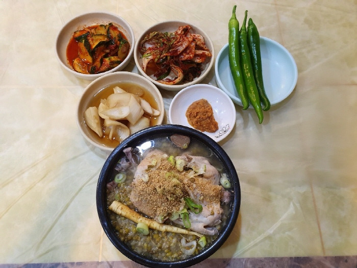 군산 개복동 골목의 터줏대감으로 40년 가까이 한 자리를 지키고 있는 식당이다. 기존 육수를 기반으로 한 국물 삼계탕을 개량하여 장시간의 레시피 연구 끝에 녹두 삼계탕을 개발하여 1982년부터 운영하고 있는 곳이다. 양계장에서 가져온 닭에 찹쌀, 녹두, 참깨, 밤, 대추, 인삼 등을 넣어 손님이 주문하면 즉시 요리하는 것이 특징이다. 잡내가 나지 않는 시원하고 담백한 국물 맛의 삼계탕이 인기가 좋으며 후식으로는 녹두죽이 제공되어 든든하게 배를 채울 수 있다. 깍두기, 양파 피클과 특제 양념과 젓국이 어우러지는 부추겉절이 등 함께 곁들여 먹는 밑반찬 또한 별미이다.