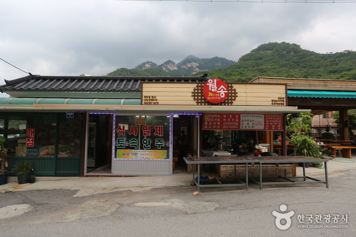 충청북도 제천시에 위치한 월악산 월송 가든은 월악산 근방 맛집으로 유명하다. 주변에 계곡을 볼 수 있고 식당과 펜션을 함께 운영하고 있어 등산객 뿐만 아니라 가족 단위로도 많이 이용한다. 대표 메뉴는 깨끗한 물과 직접 생산한 신선한 야채와 한약으로 요리한 토종닭 백숙과 현지에서 생산된 콩으로 가마솥에 직접 만든 두부를 요리한 손두부 버섯전골이다. 시원한 바람과 함께 감자전과 도토리묵으로 구성된 월송 세트 메뉴에 동동주를 곁들인다면 등산의 마무리로 제격이다.