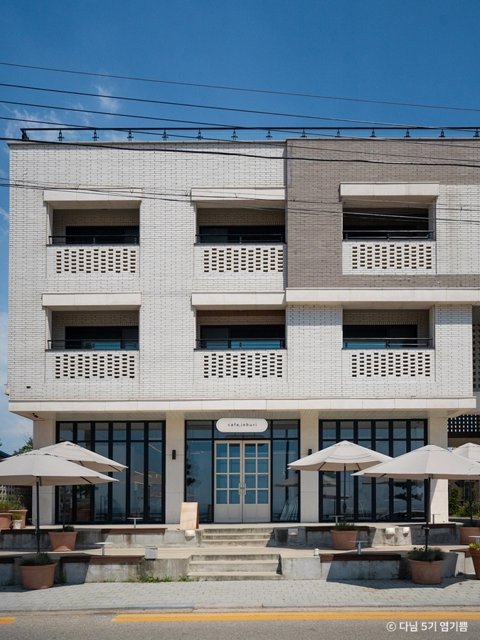 제부도 앞바다가 한눈에 들어오는 오션뷰 카페다. 크림색의 따스한 외관이 눈길을 끄는 이곳은 1층은 카페로, 2층과 3층은 숙소로 사용된다. 야외에는 노출 콘크리트와 원목을 활용한 감각적인 디자인의 좌석이 마련돼 햇볕이 따뜻한 날에는 바다를 보다 가까이에서 즐길 수 있다. 카페 내부도 부드러운 색감의 조화가 눈과 마음을 편안하게 만들어준다. 또 곳곳에 자리한 화분과 생화가 싱그러운 활기를 불어넣는다. 잔잔하게 깔리는 음악도 아늑함을 더한다. 이곳에선 아메리카노를 비롯한 커피류와 달고나라떼, 직접 만든 자몽에이드와 아이스티와 함께 마카롱, 치즈케이크 등 가벼운 디저트도 즐길 수 있다.