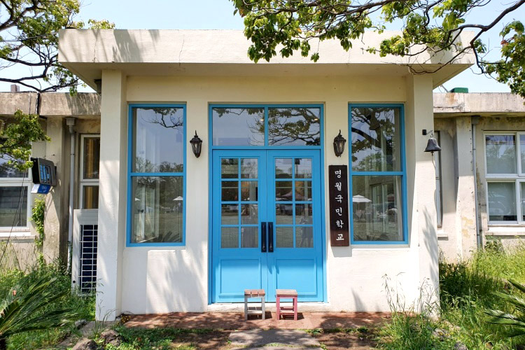 1955년 세워졌다가 1993년에 폐교한 명월 국민학교를 명월리 주민들이 제주도 교육청으로부터 임대를 받아 마을 예산으로 개조하였다. 마을 사람들의 힘이 더해져 더 의미 깊은 곳이 아닐까 싶다. 넓은 운동장 한쪽에 하얀 분필로 쓴 손글씨의 첫 공지사항이 ‘학교 안에 있는 동·식물을 사랑해달라’는 것에서부터 순수하고 예쁜 동심이 절로 살아난다. 아이와 손잡고, 혹은 초등학교 때의 기억을 안고 추억여행하는 기분으로 방문하기 좋은 카페이다. 어린 시절 학교 끝나고 문방구에서 사 먹었던 불량식품들도 카운터에 있어서 옛 기억 떠올리기 좋은 곳이다. 특히 복도에서 창가를 바라보며 앉아 커피 한잔하면 초록색으로 덮인 풍경과 함께 마음이 따뜻해진다.