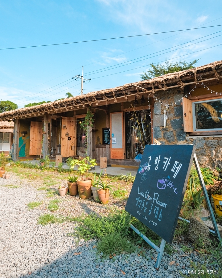 제주 성읍민속마을 내에 자리한 카페다. 제주의 전통 돌담집을 활용한 만큼 정겹고 따스한 분위기가 인상적이다. 이곳의 대표 메뉴는 청귤 모히또이다. 제주 재래 귤인 청귤을 이용해 모히또 특유의 상큼한 맛을 잘 표현했다. 청귤 차와 금귤 차 등 직접 만드는 차 종류도 공간과 잘 어우러진다. 감귤 가래떡과 감귤 토르티야 같은 가벼운 먹거리도 함께 판매한다. 공방 카페를 표방한 만큼 가죽 제품이나 드림캐처 만들기, 들꽃 부케 만들기 같은 다양한 체험 프로그램도 선보인다. 주인장이 직접 만든 제품은 판매도 가능하다. 카페 입구에는 버려진 나무로 재활용 그네를 만들어 아이들에게 색다른 즐길 거리가 된다. 반려견 동반도 가능하다.