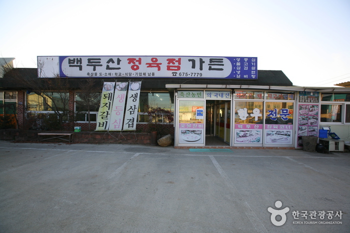 백두산정육점가든은 경기도 안성시에 위치하고 있다. 질 좋은 국내산 한우를 정육 식당 형식으로 판매하고 있다. 한우 특++ 등심, 차돌박이, 등 다양한 한우 구이류를 맛볼 수 있으며 돼지갈비, 생삼겹살 또한 인기 메뉴이다. 돼지갈비는 따로 포장이 가능한테 푸짐한 양을 저렴한 가격에 구매 가능하다. 실내 좌석이 넉넉하고 주차장 시설도 완비하고 있어 각종 모임을 하기에도 좋다.
