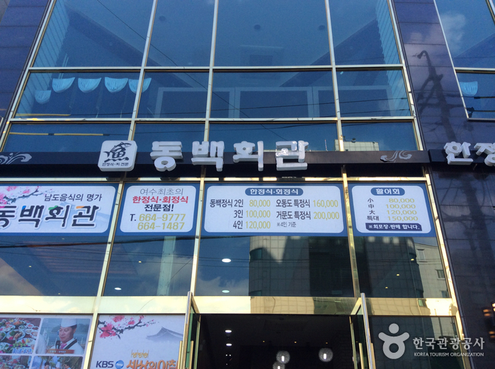 여수 엑스포공원 인근에 위치한 해물회 한정식 전문점 동백회관은 한정식과 해물회 한정식을 메뉴로 하고 있다. 각종 언론매체에도 소개된 유명 식당이다. 최대 30~40명 정도를 수용할 수 있는 단체석부터 가족모임을 위한 4~15명이 앉을 수 있는 룸이 준비되어 있어 프라이빗하게 식사를 즐길 수 있다.