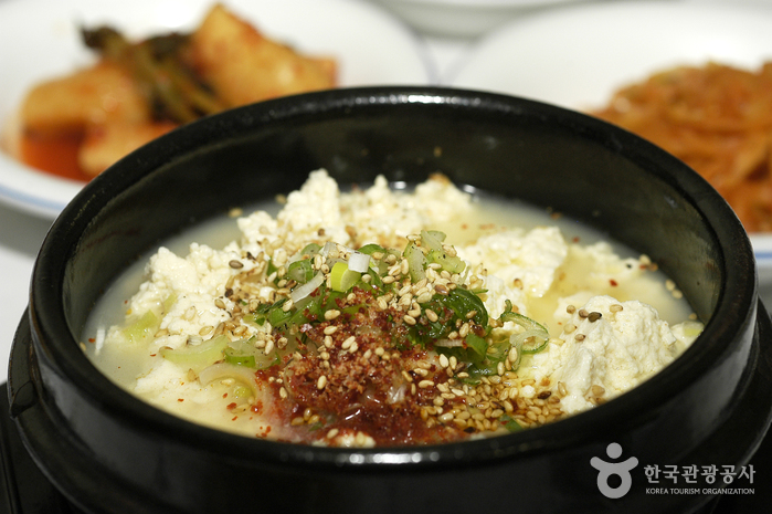 손두부, 콩탕, 청국장, 순두부, 두부찌개, 콩국수 등 콩을 사용한 다양한 요리가 준비되어 있다. 특히 여름철에는 고소하고 담백한 콩국수 요리가 단연 인기 메뉴라 할 수 있겠다. 그 옛날 어머니가 만들어준 고향의 맛이 생각나게 하는 토속적이고 가정적인 깔끔한 음식이 인상적이다.