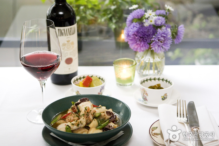 스페인산 이베리코 하몽 / 매콤한 닭 그릴 / 어란 오일 파스타 / 성게알 로제파스타 / 치즈바게트 그라탕 외