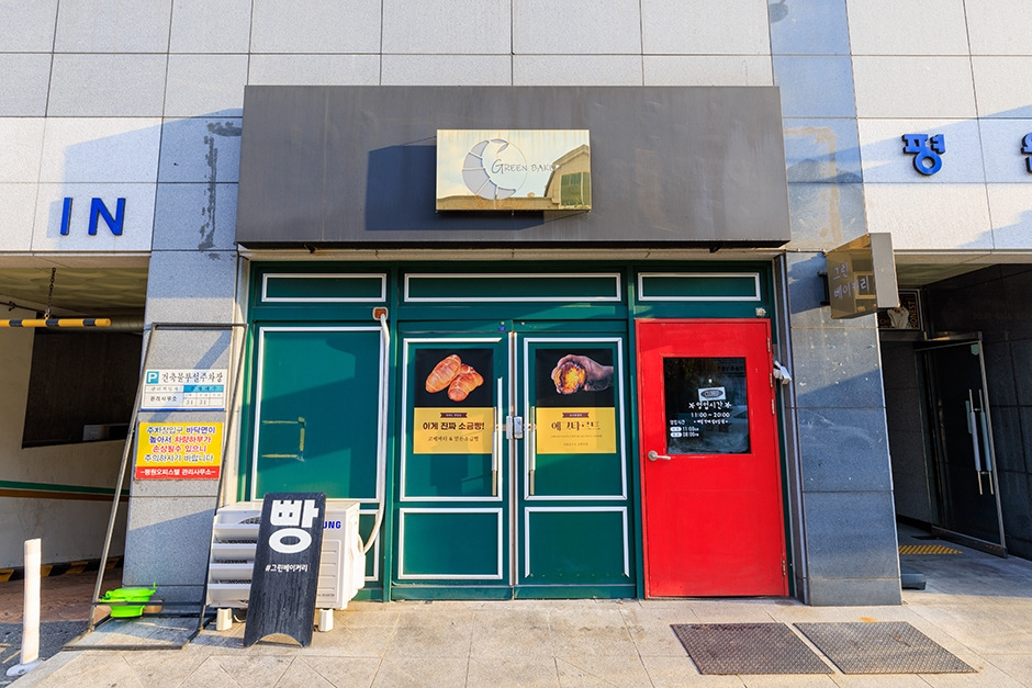 그린베이커리는 대전광역시 유성구 관평동에 있다. 현대적인 외관과 그에 걸맞은 세련된 분위기의 인테리어가 눈에 띈다. 대표 메뉴는 프랑스 밀가루와 고메버터로 만든 고메버터&말돈소금빵이다. 이 밖에 치즈타르트, 에그파이, 블루베리 조각케이크, 그릴 샌드위치 등 여러 가지 빵이 준비되어 있다. 매장 내에 테이블이 있어 매장 내에 맛볼 수 있고 빵뿐만 아니라 커피와 다양한 음료들도 준비되어 있다. 북대전 IC에서 가깝고, 주변에 티 놀자 애니멀파크와 한국도로공사회덕메타세쿼이아길이 있다.