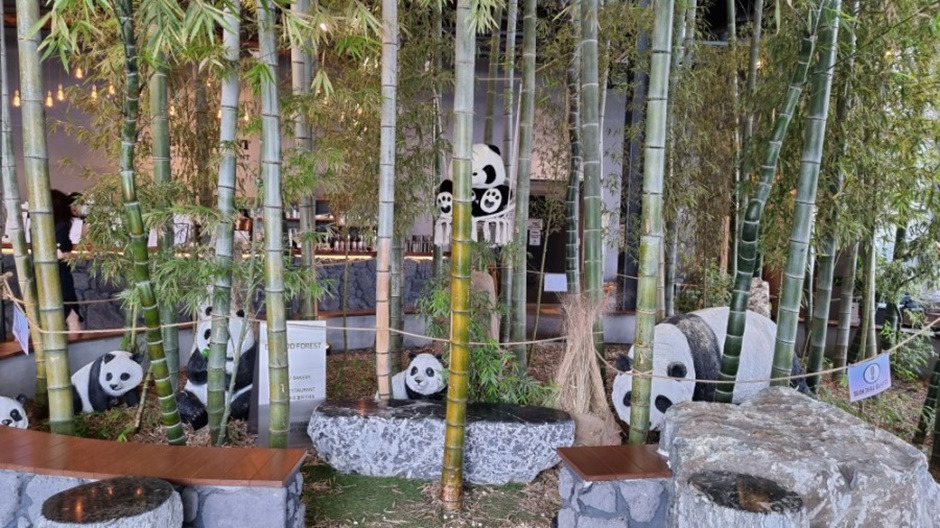 뱀부포레스트는 김포에 위치한 대형 카페 겸 레스토랑이다. 1층은 베이커리 카페로 운영 중이고, 2층은 레스토랑으로 운영 중이다. 이름처럼 실내·외가 대나무로 가득 꾸며져 있어 마치 숲 속에 온 듯한 느낌을 준다. 곳곳에 귀여운 판다 모형들도 있어서 사진 찍기에도 좋다.