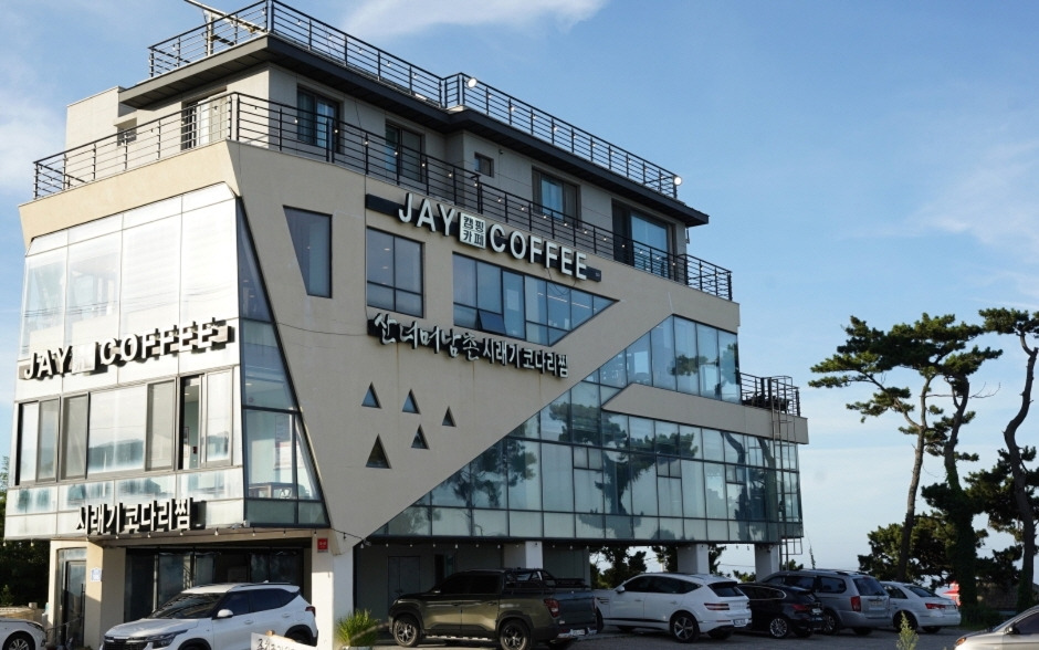 제이커피는 울산 동구 주전몽돌해수욕장까지 차로 5분 거리에 위치해 있으며 카페 창 밖으로 보이는 주전항의 아름다운 뷰를 품은 캠핑카페이다. 내부는 인테리어가 두 가지 콘셉트로 되어 있으며 오션뷰와 마운틴뷰를 모두 감상할 수 있는 매력적인 카페이다. 오션뷰 측은 현대식 원목 탁자 테이블로 엔틱 한 콘셉트로 꾸며져 있고 마운틴뷰 측은 캠핑 콘셉트로 캠핑의자와 테이블에 앉아 인테리어 소품으로 된 난로 앞에서 차 한잔을 즐길 수 있는 콘셉트로 꾸며져 있다. 캠핑카페 제이는 앉아서 해녀의 물길질을 볼 수 있는 깨끗한 동해 바다와 4계절 색색 다른 산을 보며 힐링하고 쉴 수 있는 편안한 카페이다.