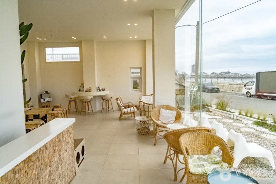 속초 해수욕장과 대관람차가 인접해있고 속초수산물 시장과 영금정도 근거리에 있어 근처를 관광하고 편안한 휴식을 취하기에 좋은 카페이다.