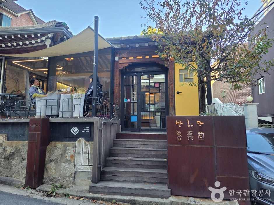 반하당은 한옥을 개조한 카페이다. 한옥의 기둥만 남겨두고 벽체를 없애 공간을 오픈하여 답답한 느낌이 없고 쪽마루 공간에 작은 소반을 놓고 마시는 차 한 잔은 개방감 있는 한옥의 매력을 느끼게 하기에 충분하다. 안쪽으로 들어가면 다락공간도 있어서 신발을 벗고 좌식으로 앉아 편하게 휴식을 취할 수 있다.