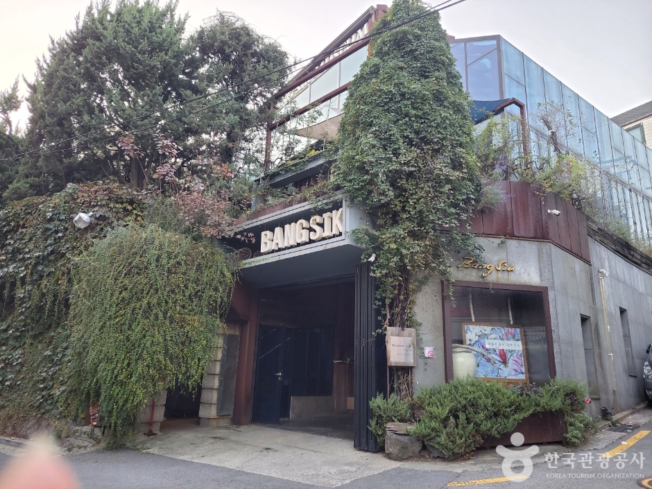입구의 계단을 올라가면 식물원을 연상시키는 공간이 나온다. 야외정원은 서울 한복판이 아닌 숲속에 있는 듯한 느낌을 준다. 수많은 식물로 가득 차 있는 공간으로 1층과 2층 모두 다양한 생화로 꾸며져 있으며, 방식 플로리스트의 그림, 꽃 장식 작품들과 책이 전시되어 있다. 음료를 주문할 경우 1,2 층의 작품 전시를 모두 자유롭게 관람할 수 있다.
