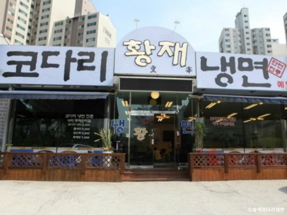황재코다리냉면은 경기도 용인시 수지구 죽전동에 있는 이북식 냉면 맛집이다. 북한이 고향인 할머니에게 전수받아 3대째 운영하는 냉면 전문점으로 고명으로 올리는 황태는 진부령에서 말린 것을 사용한다. 대표 메뉴는 코다리냉면, 황태떡만두국, 물냉면, 아바이순대로 식사를 하기 전에 황태 육수를 제공한다. 물냉면은 직접 담근 동치미로 국물을 낸 정통 이북식이다. 속이 꽉 찬 만두는 냉면과 함께 먹으면 별미이고 채소와 고기를 많이 넣은 이북식 아바이 순대도 맛있다.