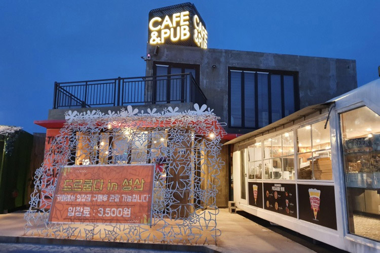 드르쿰다in성산은 광치기 해변에서 차로 2분 거리에 위치해 접근성이 좋고, 부근에 유명한 관광지들이 밀접해있어 인프라가 좋아 여행 중 들르기 좋은 명소이다. 넓은 부지에 이국적으로 꾸며 놓은 잔디 광장, 돌담으로 만들어놓은 성과 추억을 되살리는 회전목마가 눈길을 끈다. 스튜디오를 연상케 하는 실내공간에서는 인생샷을 찍기 좋고, 다양한 테마의 카라반을 예약하여 내부에서 파티, 보드게임을 해보는 것도 추천한다. 낮엔 디즈니, 밤엔 라라랜드 느낌으로 변하는 대형 스튜디오에서 소중한 사람들과 추억을 남기고 성산일출봉 뷰의 프라이빗 한 드르쿰다 해변에서 일광욕도 즐겨보자.