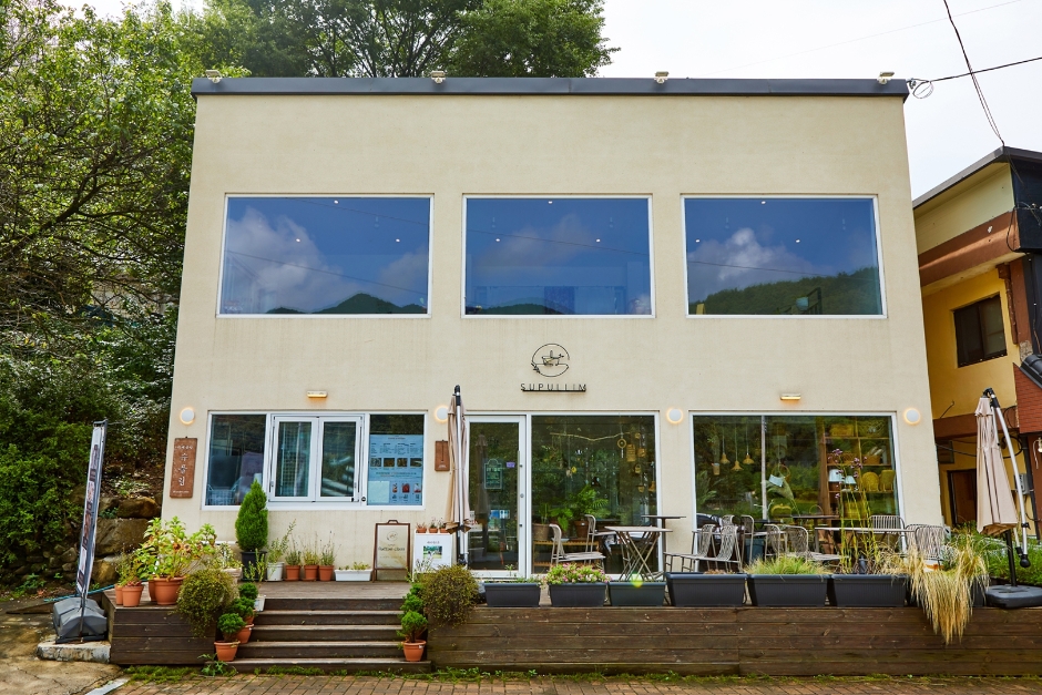 주왕산국립공원 초입에 자리한 카페로, ‘주왕산 뷰 맛집’이기도 하다. 주왕산의 뷰는 2층 좌석에서 더욱 더 잘 보이는 편. 이곳의 시그니처 메뉴는 수제 쌍화차(당귀, 계피, 감초 등 동아시아에서 자주 사용하는 약초 풀을 달여서 만든 전통 음료로, 체력을 보완해주거나 몸을 따뜻하게 해주는 효과가 있다)와 인절미팥빙수. 여행 전후로 이곳에서 주왕산의 풍경을 감상하며 쉬어가보자. 참고로, 이곳은 라탄 공방으로 가게 주인이 직접 만든 라탄 소품을 구매할 수 있다.