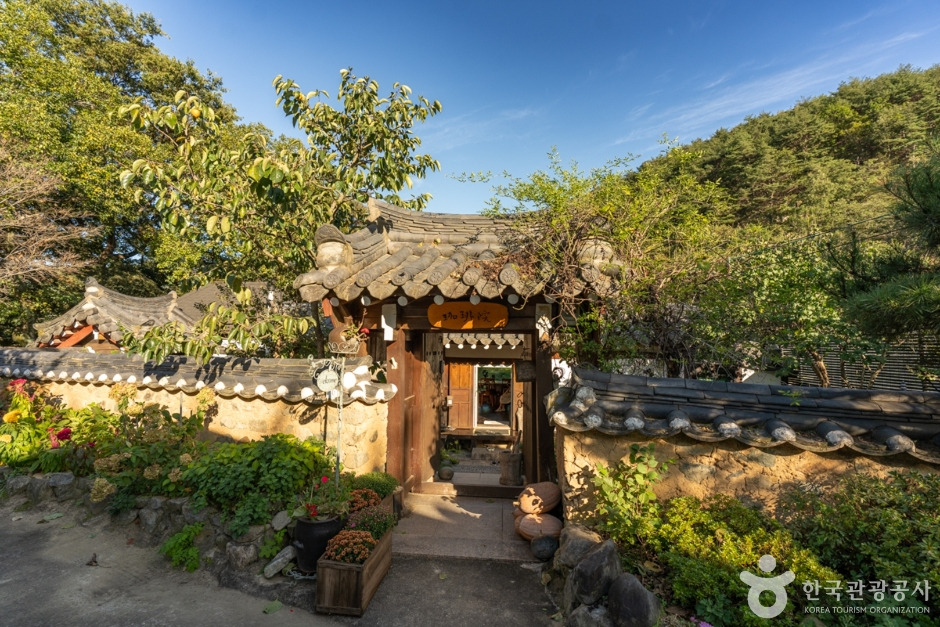 덕동문화마을 안에 있는 세월이 묻은 고택과 유형문화재, 울창한 소나무 숲에 숨겨진 명소, 한옥 카페 ‘가배원’에 들어서면 먼저 사랑스러운 고양이들이 눈인사로 맞아준다. 정자를 개조한 기둥과 대들보가 살아 있는 공간에 고풍스러운 소품과 사장님이 직접 그린 그림들의 조화를 이루는 평화롭고 고즈넉한 풍경 속에서 잠시 도심을 떠나 쉴 수 있는 곳이다.