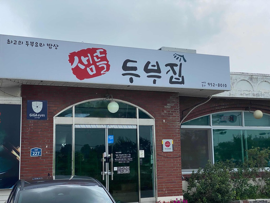 샘뜰두부집은 DMZ 대성동 마을에서 직접 기른 장단콩을 사용하여, 매일 아침 가마솥에서 만든 두부만을 판매한다. 100% 장단콩 두부 전문점으로 두부로 만든 다양한 두부 요리를 맛볼 수 있다. 가장 인기 있는 메뉴는 두부보쌈이다. 가족 단위로 많이 찾는 곳으로 건강한 두부 요리를 즐길 수 있다.