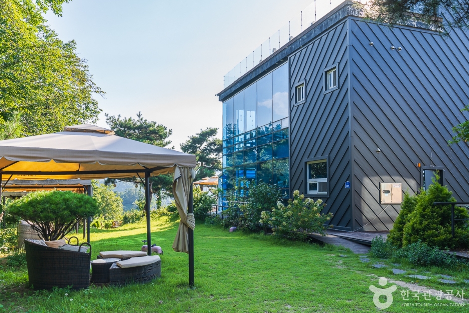 3면이 유리로 되어 있어 주변의 탁 트인 풍경을 온전히 즐길 수 있으며, 야외 테이블까지 마련되어 있어 아름다운 풍경과 자연의 바람을 느낄 수 있는 곳이다.