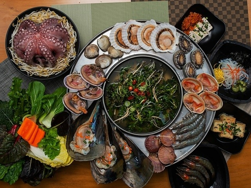 전복삼판삼합, 해녀전복샤브샤브, 해녀물회1인, 어부의밥상(점심), 꼬막초무침, 문어숙회