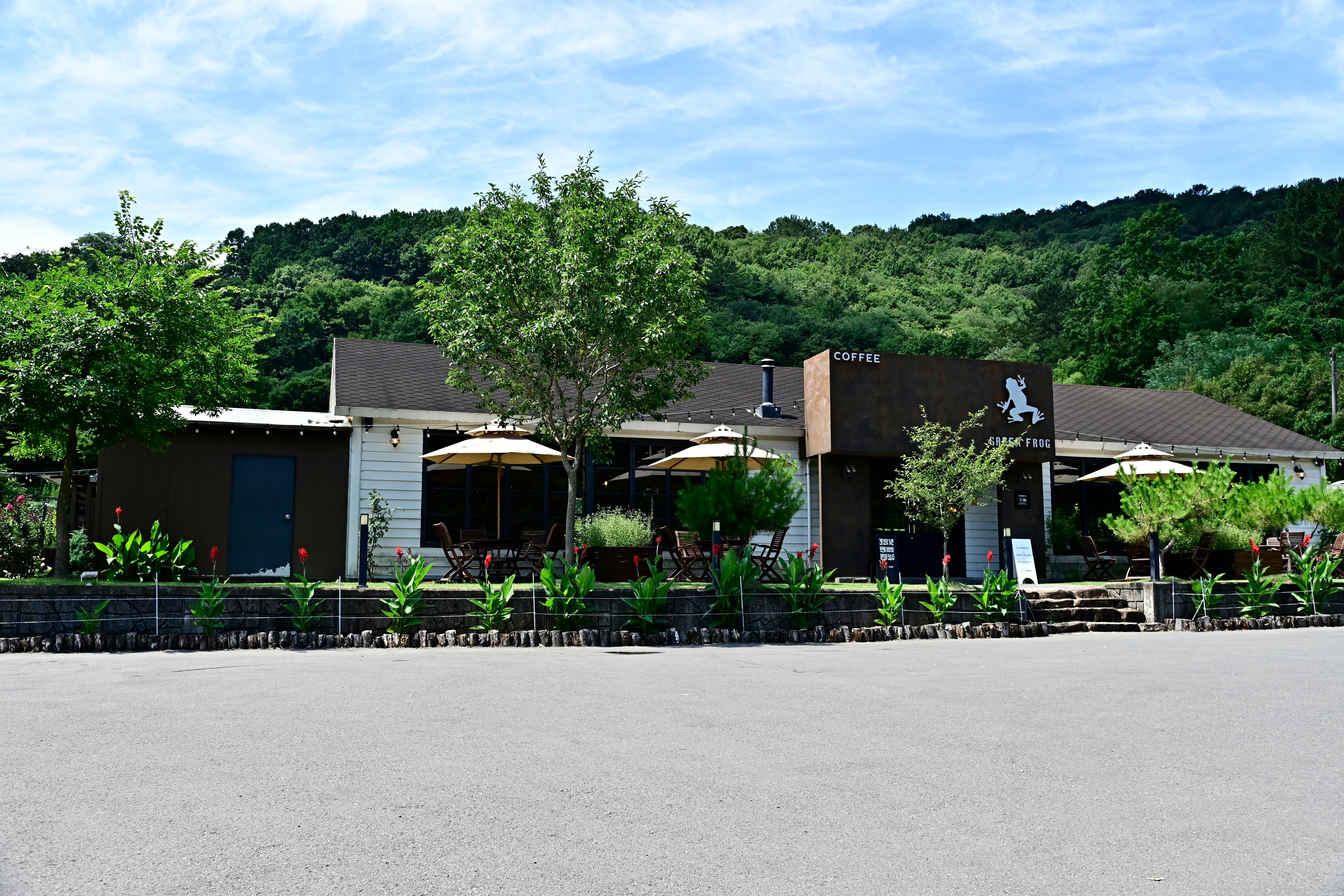 재미있는 이름의 그린프로그는 이병철 생가를 방문하고 차를 한잔하거나 편안하게 쉴 만한 곳을 찾는다면 추천하고 싶은 곳이다. 탁 트인 실내는 다양한 스타일의 테이블과 의자가 있어서 취향에 맞게 골라 앉으면 된다. 특히 캠핑장의 분위기를 재연한 듯한 테이블은 요즈음 트렌드와 맞아서 인기가 좋다. 건물 뒤편의 야외 잔디밭은 아이들이 뛰어놀거나 사진을 찍기에 좋다. 메뉴는 사진을 일일이 다 찍어서 한눈에 보기 쉽게 걸어 두고 있어서 주문하기가 편리하다. 각종 라테와 수제와플이 인기가 있고 멜론이나 딸기 등 제철 과일로 만든 빙수의 인기가 좋다.