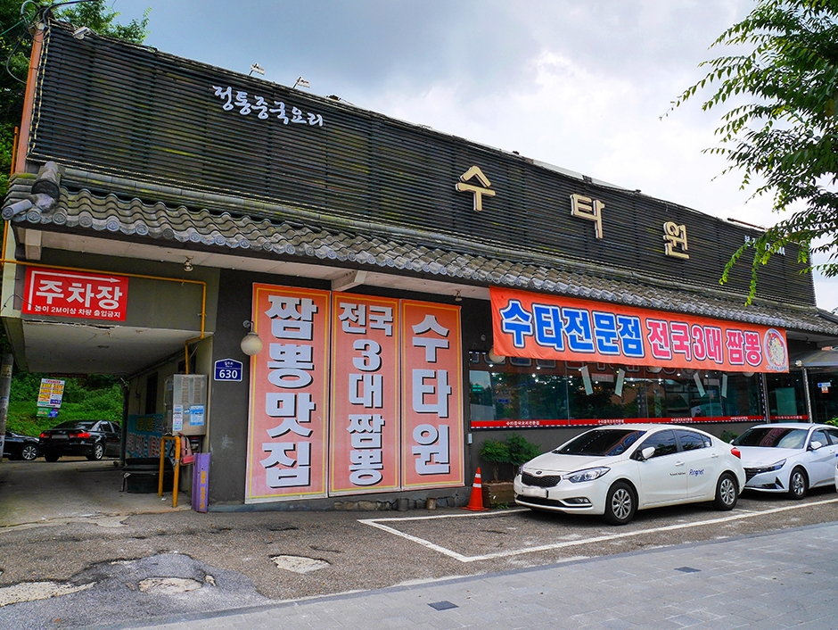 수타원은 까치울역 바로 앞, 큰 길가에 있는 전통 중국 음식전문점이다. 건물 앞과 뒤에 주차장이 넉넉하게 있고 안내하는 분이 있어 주차가 편하다. 기와지붕 위 큰 한글 간판의 외관에, 깔끔하고 넓은 내부로 많은 인원을 수용할 수 있는 단체 룸이 있다. 매장 한쪽에는 셀프로 이용할 수 있는 반찬과 식기류가 있다. 이 식당의 면은 손으로 만드는 수타면으로, 기계면과 다르게 굵고 쫄깃한 면발을 맛볼 수 있다. 이곳은 음식 회전율이 높지만 대기가 발생 시 문 앞에 대기 명단 표에 이름과 인원수를 작성하고 기다리면 된다. 근처 와룡산과 부천 생태수목원이 있으며 대중교통 및 도보로도 이동이 편하다.