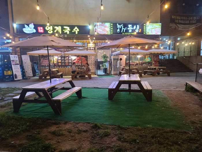 좋은 재료와 맛있는 음식을 합리적인 가격으로 제공하는 영계국수더등심이다. 가까운 곳은 25인승 버스로 픽업 서비스도 운영 중이다.