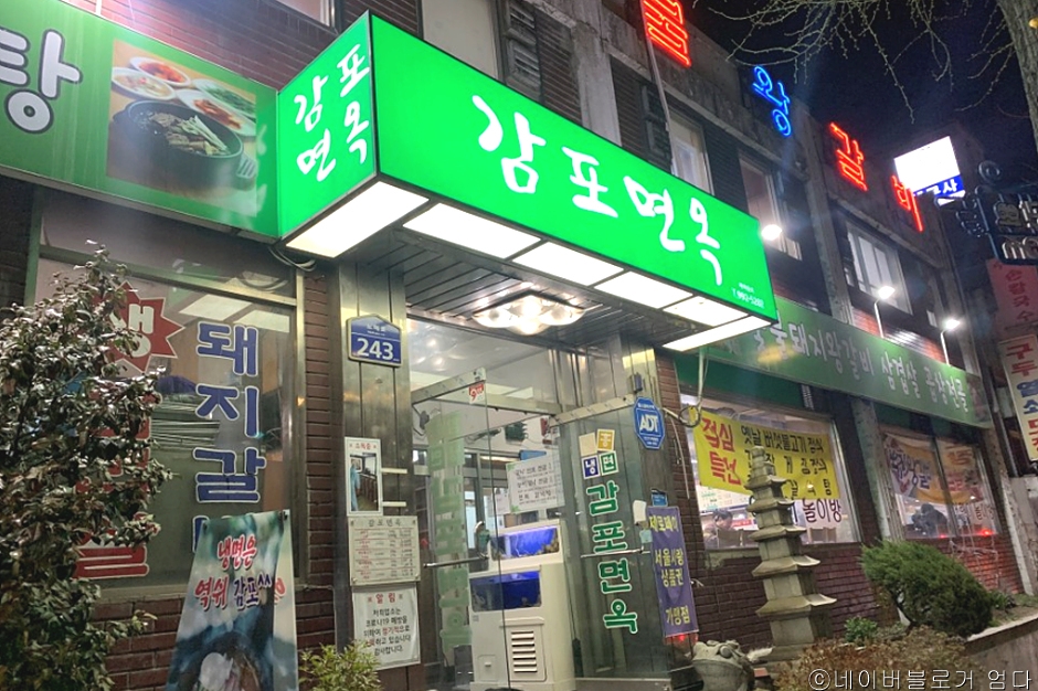 감포면옥은 지하철 4호선 쌍문역 4번 출구 정의여중 입구 사거리 방향 인근에 있다. 식당 전면 중앙에 있는 초록색 간판이 먼저 눈에 들어온다. 옛날 간판도 그대로 사용 중이어서 이 음식점의 세월을 느낄 수 있다. 외부와 다르게 1, 2층으로 돼 있는 내부는 상당히 깔끔하게 관리되고 있다. 생등심은 질 좋은 한우 A+를 사용한다. 50년 손맛으로 잘 재어진 왕 돼지갈비는 부담 없는 가격에다 숯불로 구워 식감을 살려낸다. 후식용 아이스바를 유료로 판매하고 있다. 이곳 식당과 주변은 인기 드라마의 배경이 된 바 있다. 쌍문근린공원이 멀지 않아 식사 후 가벼운 산책을 할 수 있다.
