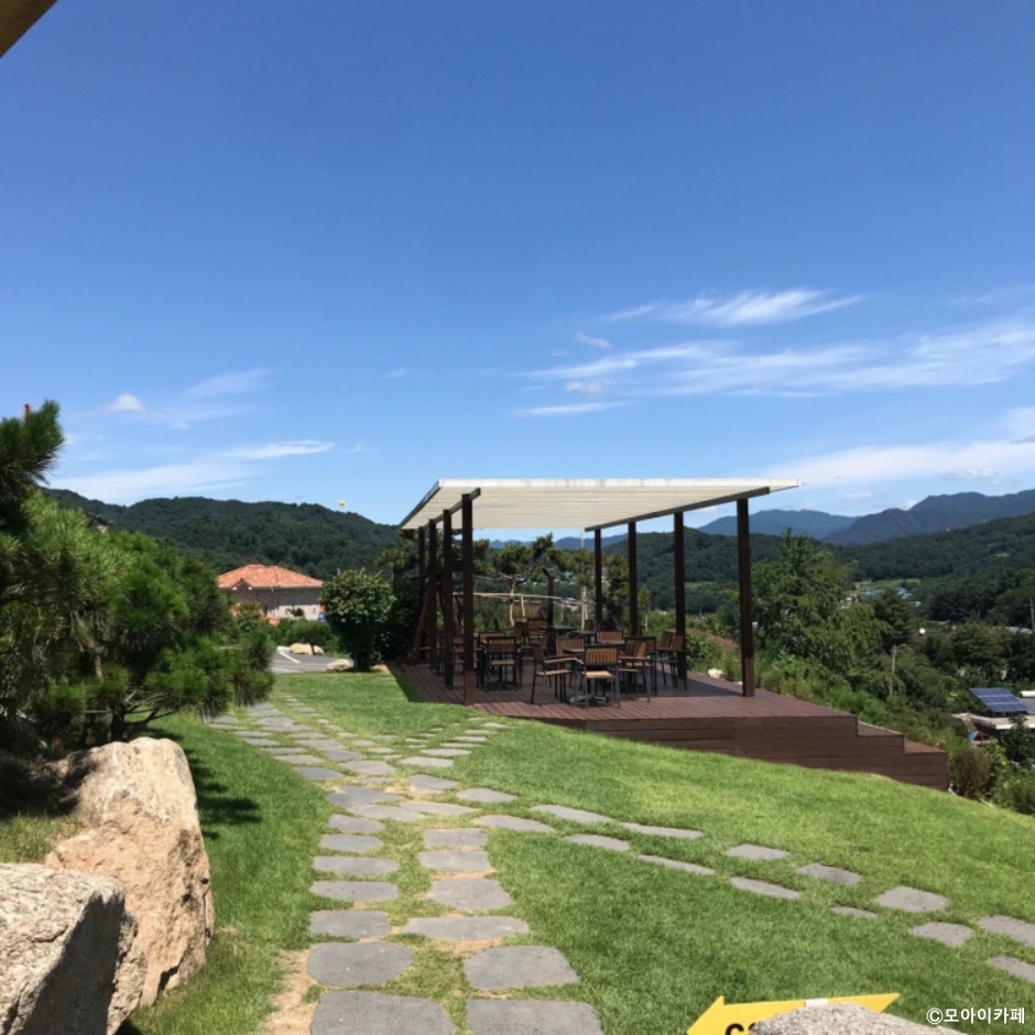 모아이카페는 도심에서 벗어나 탁 트인 풍경을 바라보며 커피 한잔의 여유를 갖게 하는 공간이다. 축령산을 병풍처럼 두른 모아이카페의 독특하면서도 자연과 조화롭게 어우러지는 건축물의 아름다움도 느낄 수 있다. 외부 좌석에는 빈백과 파라솔, 테라스 공간이 있어 날씨에 따라 골라 앉아 힐링을 할 수 있는 곳이다.