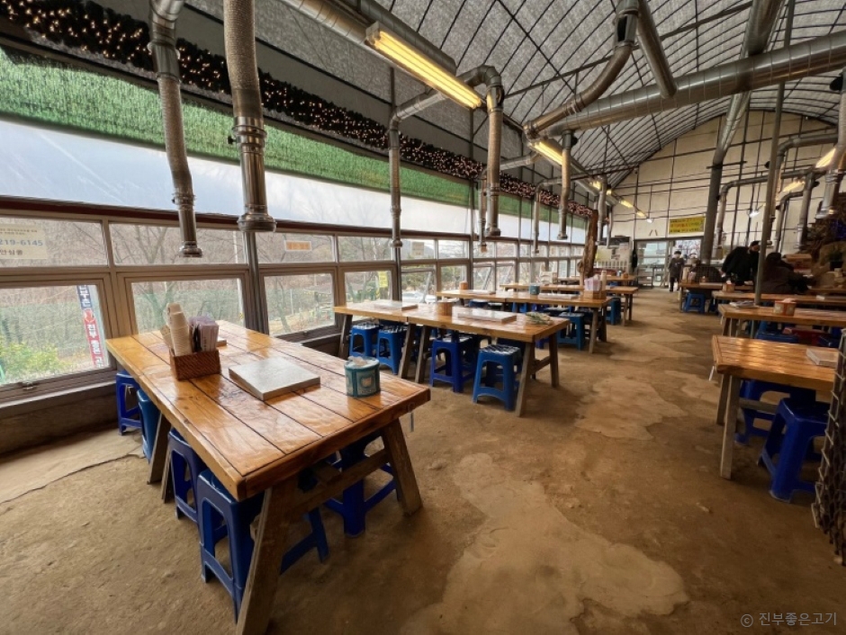 진부좋은고기는 경기도 의왕시 청계동, 청계산 입구에 있는 정육식당이다. 주변 경치를 감상하기 좋은 야외 테이블이 마련되어 있다. 매장은 넓고 쾌적하며, 크고 작은 모임을 하기 좋다. 대표 메뉴는 명품 갈비꽃살, 명품 꽃등심, 국내산 암퇘지 목살이다. 이외에도 다양한 종류의 고기를 판매하고 있다. 또한, 고기와 함께 먹기 좋은 버섯, 명이나물, 된장찌개 등을 판매한다. 상차림 비용을 인원수대로 지불하면 테이블과 불판을 사용할 수 있다. 밑반찬은 셀프바에서 얼마든지 가져다 먹을 수 있다. 전용 주차장이 있어 편하게 이용할 수 있다.