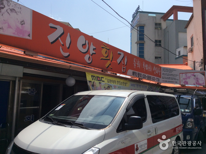 진양횟집은 강원 속초시 아바이 마을 내에 위치한 음식점으로 오랜 시간 전통을 자랑한다. 여러 매체에 오징어순대 맛집으로 소개되었으며 회덮밥과 성게비빔밥도 별미이다. 신선한 재료를 사용하여 전체적으로 깔끔한 요리를 맛볼 수 있다.