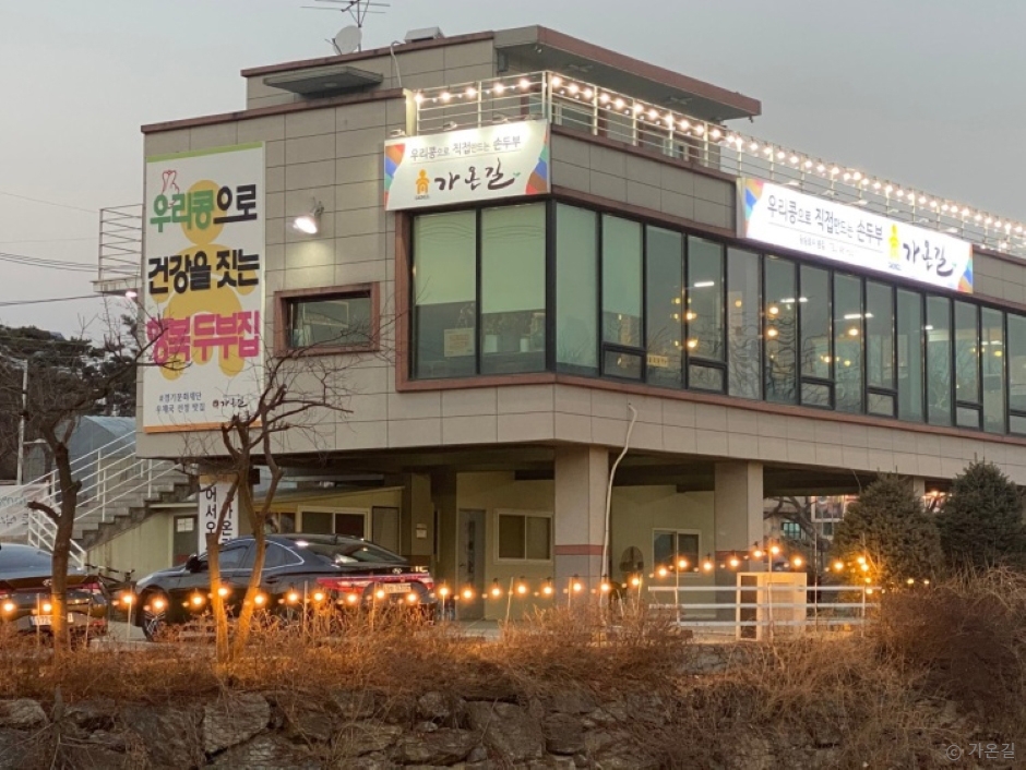 가온길은 경기도 의왕시 왕송호수 맞은편에 위치한 두부요리 전문점이다. 이곳은 당일 생산한 신선한 두부만 사용하여 건강한 먹거리를 제공한다. 대표메뉴는 두부와 만두의 깔끔한 조합인 두부전골과 얼큰한 국물과 부드러운 순두부가 만난 얼큰순두부전골이다. 이외에도 생고기김치두부전골과 매콤두부짜글이 등도 있어 취향에 맞게 선택하여 먹을 수 있고, 수육을 특제 비법 육수와 푹 삶아 겉을 바삭하게 구워 두부, 겉절이와 함께 싸 먹는 두부보쌈도 있다.