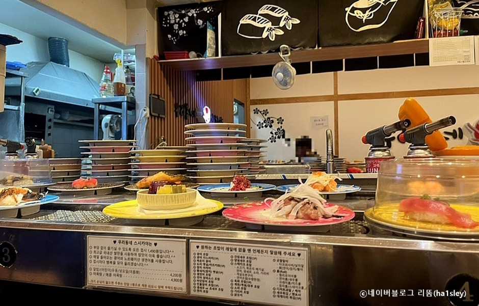 우리 동네 스시카야는 회전 초밥집이다. 오랜 경력의 주방장이 즉석에서 만드는 초밥을 맛볼 수 있다. 최고급 국내산 쌀만을 사용하며 매일 들어오는 광어와 노르웨이산 생연어, 싱싱한 활어를 사용한다. 내부에는 회전 레일을 놓고 둘러앉을 수 있는 바 자리와 여럿이 앉을 수 있는 테이블로 구성되어 있다.