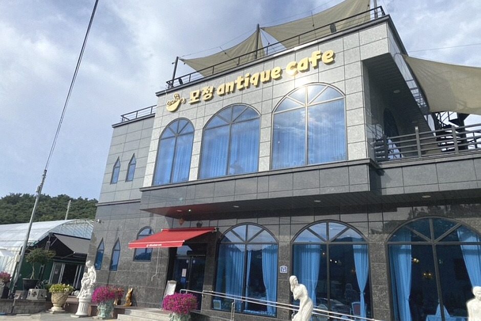 모정엔틱카페는 유럽 분위기의 엔틱카페이다. 실내에는 수많은 앤틱가구와 소품, 그림이 있으며, 야외에는 분수대와 조각상들이 전시된 정원이 있는데 마치 유럽의 정원을 그대로 옮겨놓은 듯한 이국적인 정취가 물씬 풍긴다. 정원 안쪽에는 귀여운 사랑새들이 살고 있는 새장이 있는데, 새들의 건강을 위해 한 사람당 한 줌씩 새 모이주기체험이 가능하다. 건물 3층에는 루프탑이 있는데, 이곳에서 남원의 천변을 한눈에 감상하며 음료와 디저트를 즐길 수 있다. 실내 및 실외에 10~20명까지 앉을 수 있는 단체석이 있으며, 미리 전화를 하면 더욱 편하게 이용할 수 있다. 반려동물 동반의 경우 카페 옆 정원 이용이 가능하며, 카페 내부에서 이동할 경우 전용 케이지나 슬링백, 유모차를 사용해야 한다.