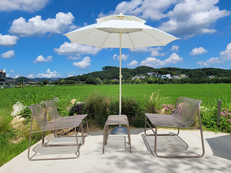 논사이하우스는 논밭 사이에 위치한 대형카페이다. 카페 건물 전체가 통창으로 이뤄져 있어서 주변 밭의 전경이 한눈에 보이고, 밭 산책로가 이뤄져 있어서 자연친화적인 카페이다. 시그니처 메뉴로 사계절에 걸맞은 음료를 판매하고 있어서 사계절 내내 즐기기에도 좋은 카페이다.
